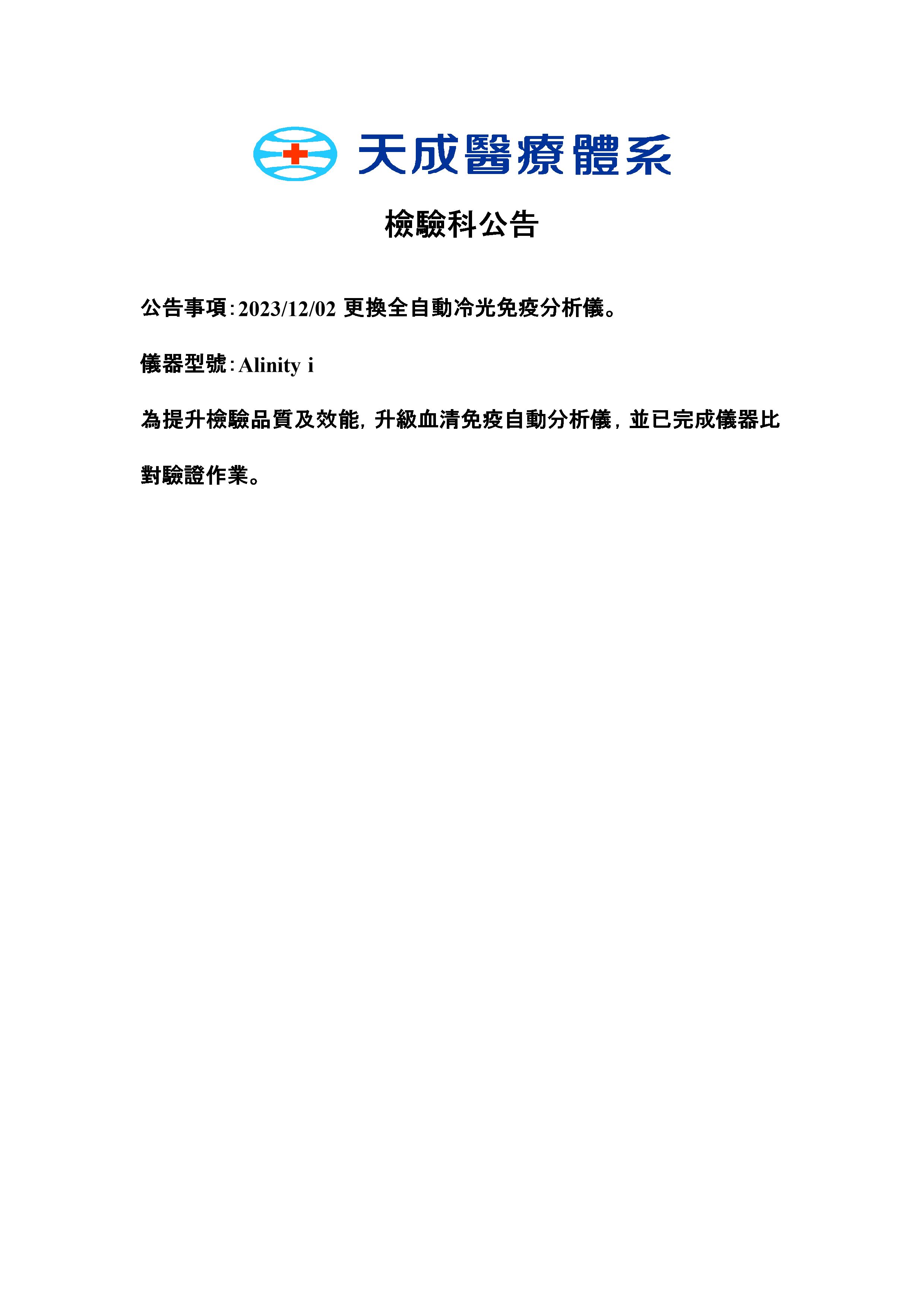 【異動公告】Alinity i免疫分析儀啟用公告_20231202