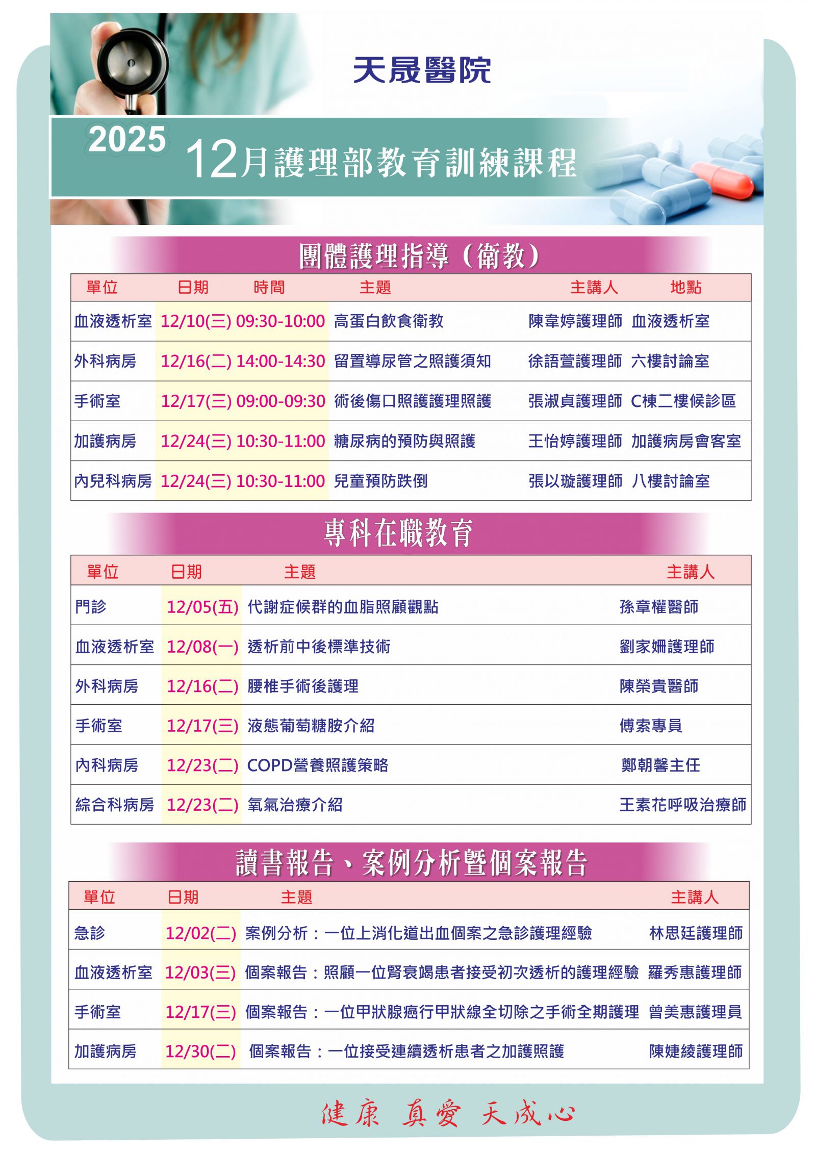 2025年12月護理部教育訓練課程